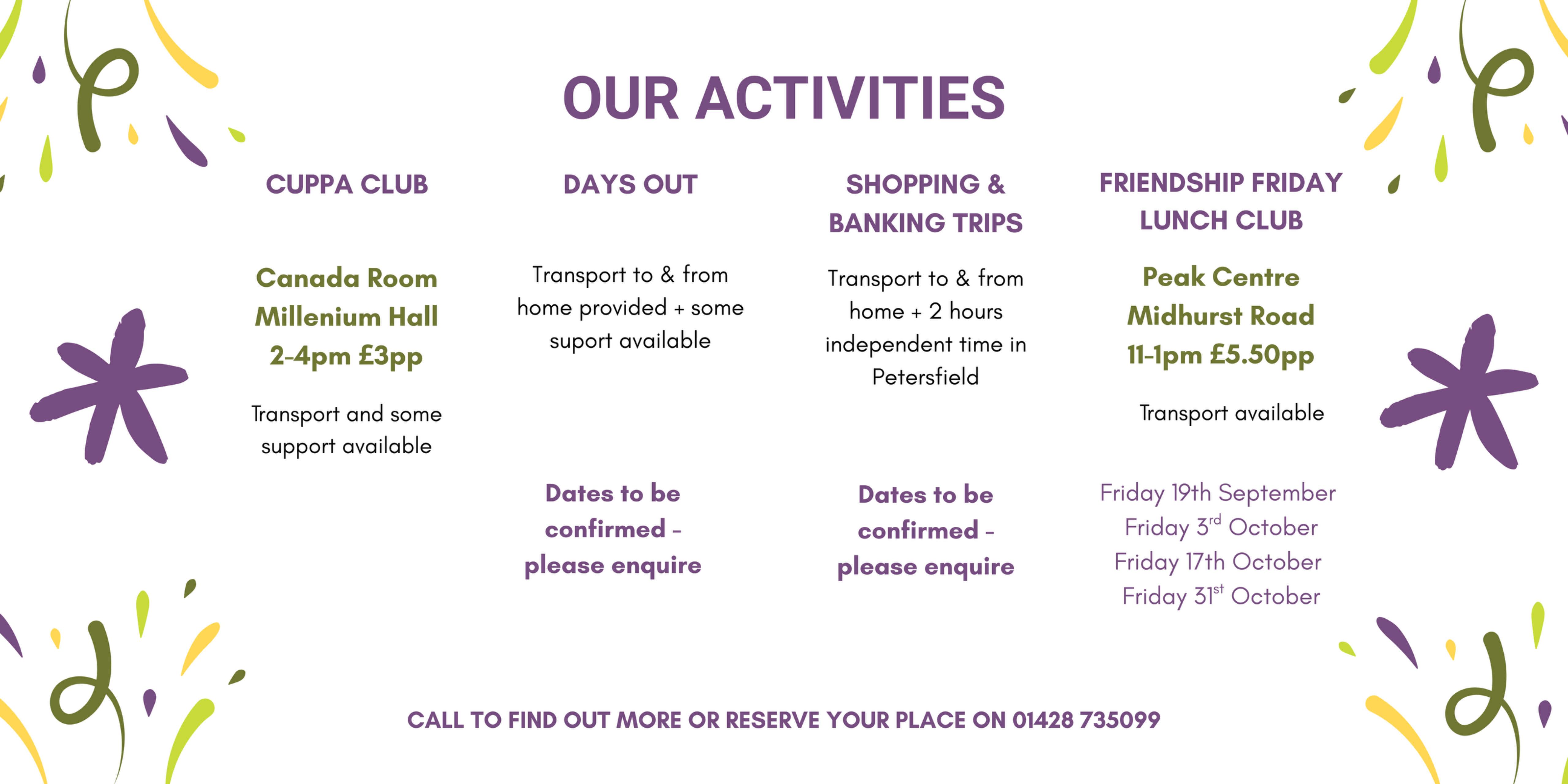 Age Concern Liphook is a registered charity that supports our older residents in Liphook & Bramshott, giving them confidence to embrace life in later years and to promote independence and well-being.